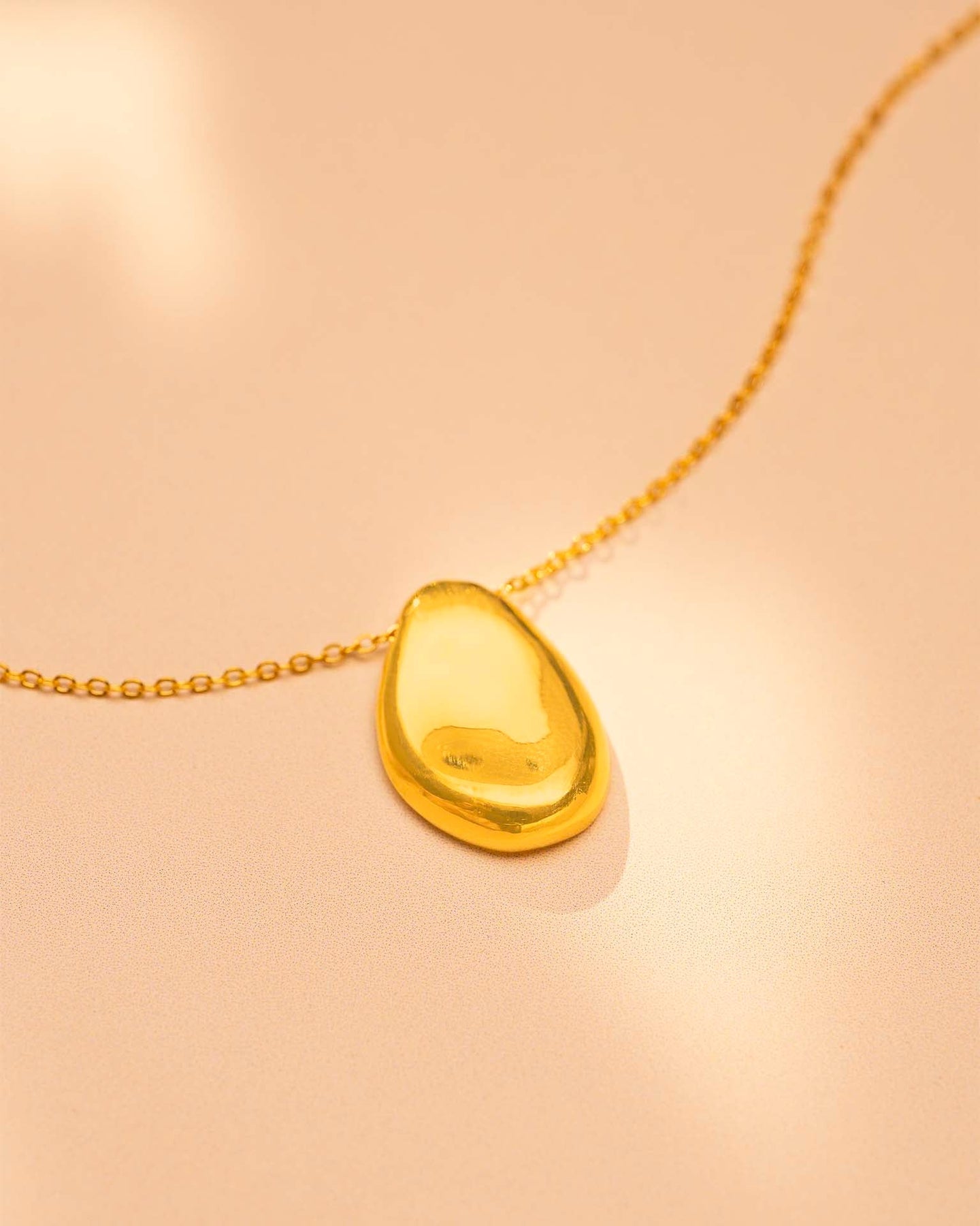 Ce collier personnalisé élégant présente un charm en pépite fondue contemporaine suspendu à une délicate chaîne trace.