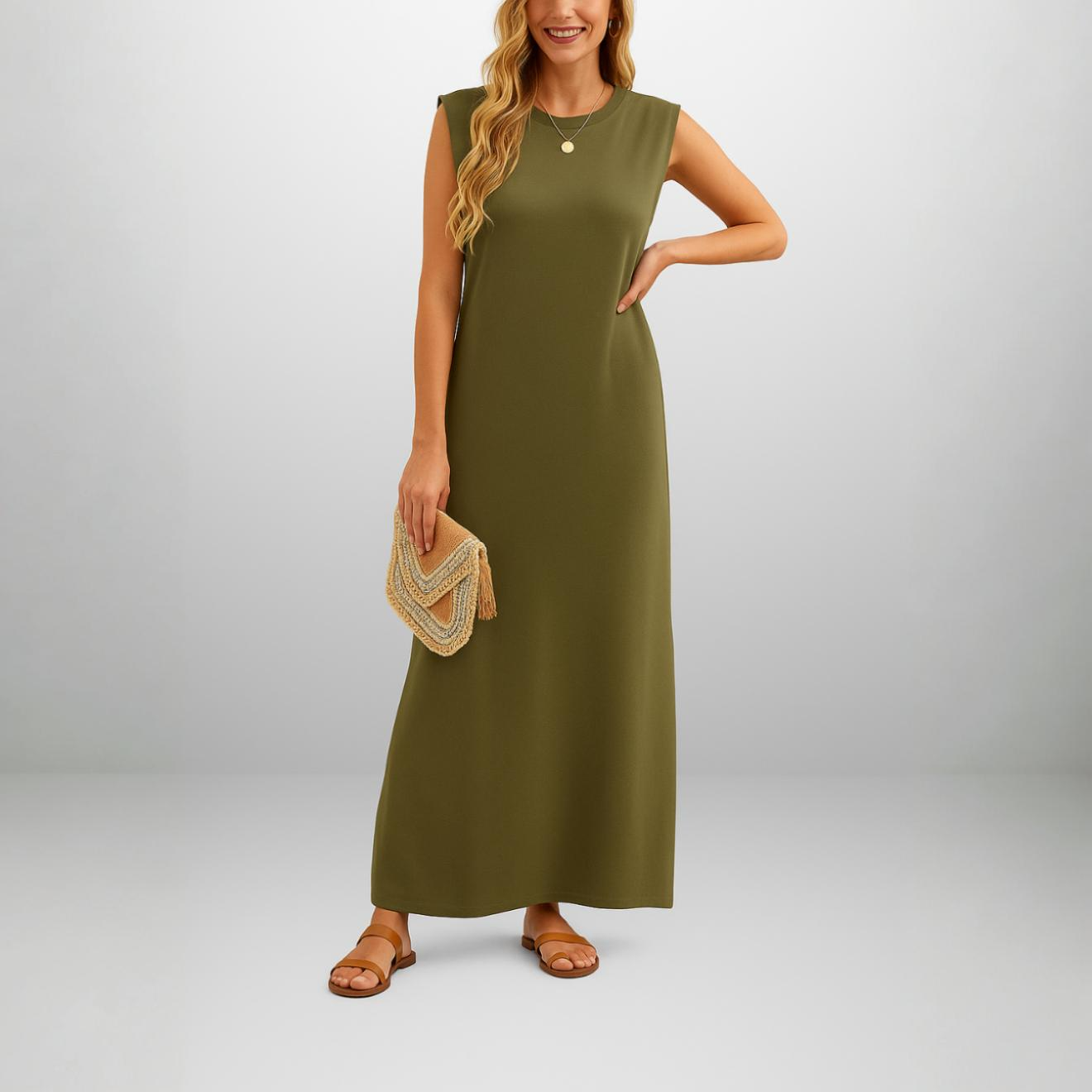 • Type de Robe : Robe longue, modèle sans manches.