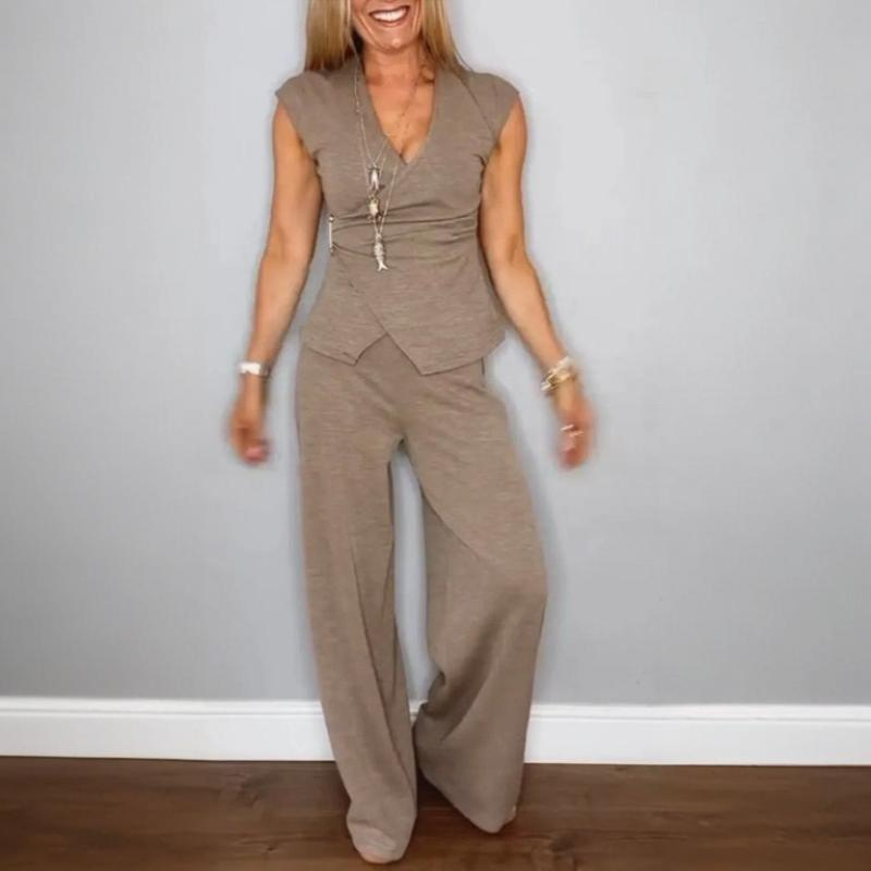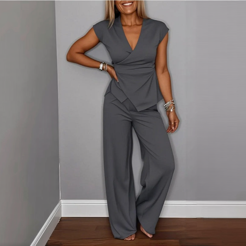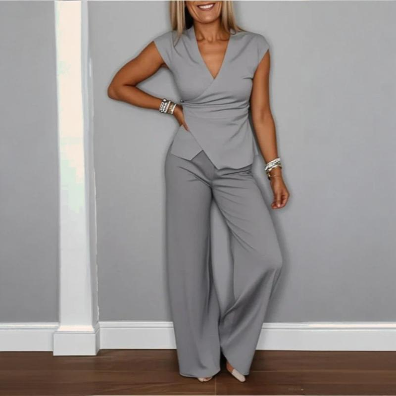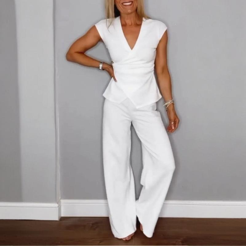 Conçu pour la femme moderne, l'Ensemble PALMIRA allie élégance intemporelle et confort inégalé. Cet ensemble deux pièces avec pantalon large et taille haute, et top à col V, sublime votre silhouette et offre une liberté de mouvement totale, toute la journée. Son tissu doux et respirant vous accompagne avec aisance à chaque occasion.