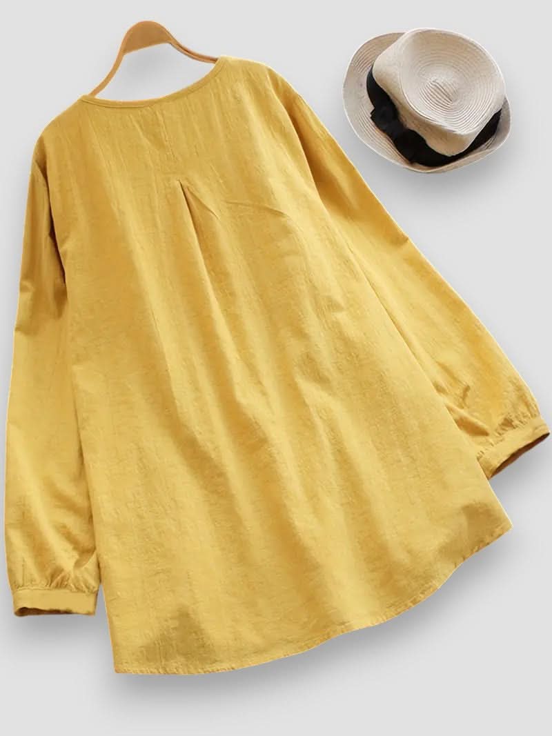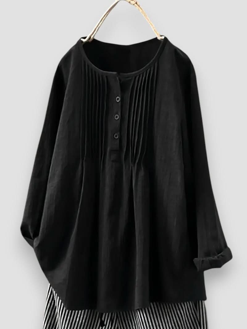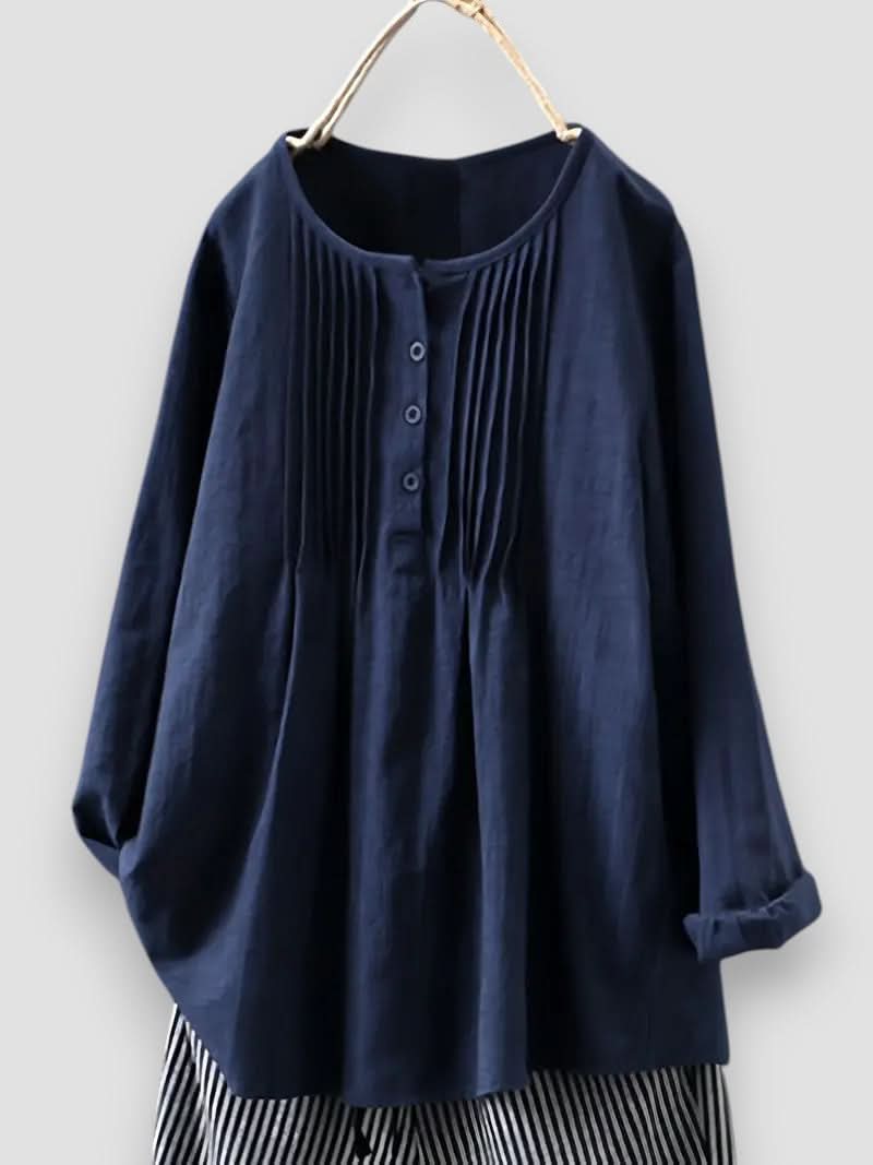 Cette élégante blouse plissée avec des manches longues et un col rond offre une coupe légère et respirante. Parfaite pour des looks décontractés au quotidien au printemps, en été ou en automne, elle s'associe facilement à divers outfits.